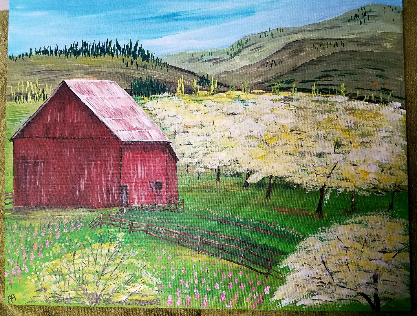 Painting On the farm Date: March 1, 2019Author: applegateslates 0 Comments Sunflower farm. 20 by 16 acrylic on canvas Orchard in spring. 20 by 16 on canvas Share this: Click to share on X (Opens in new window) X Click to share on Facebook (Opens in new window) Facebook Like Loading... Related