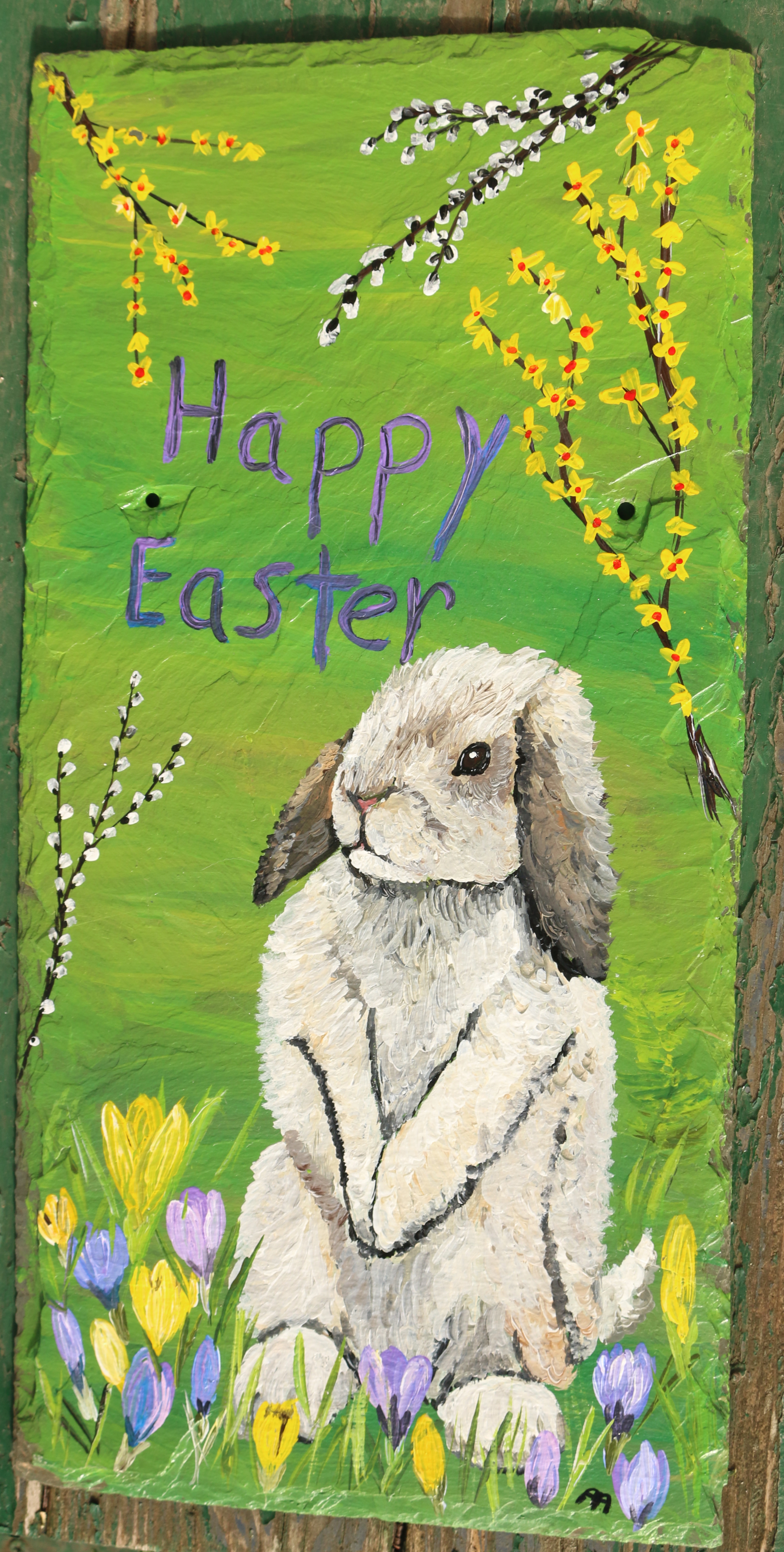 Painting, SOLD Happy Easter Date: April 15, 2019Author: applegateslates 0 Comments Nothing says Easter like a bunny and spring foliage. Full-size slate 10 by 20 inches SOLD Share this: Click to share on X (Opens in new window) X Click to share on Facebook (Opens in new window) Facebook Like Loading... Related